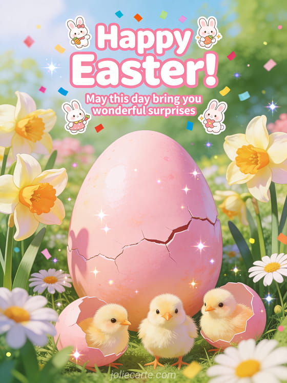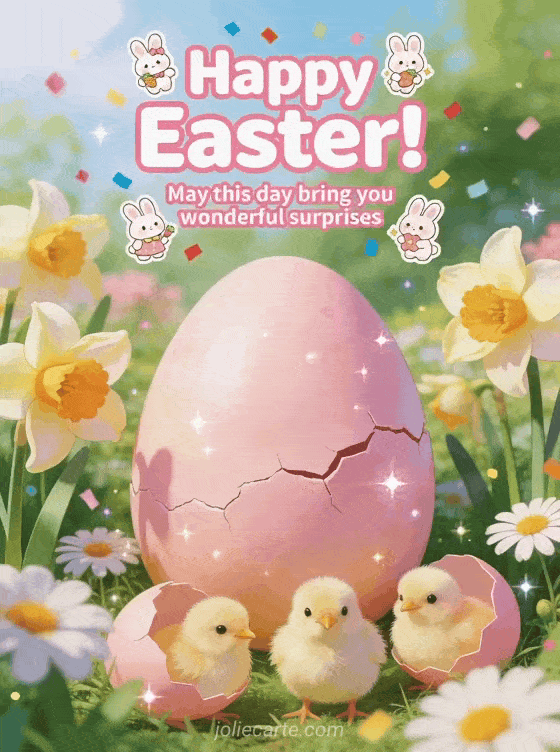 Celebrate with this beautiful animated card. Send this Happy Easter! May this day bring you wonderful surprises message to your loved ones for free. Discover also Easter or Easter.