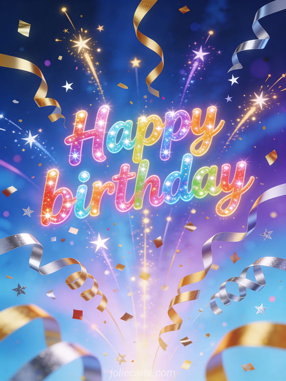 Bring party vibes with this exuberant birthday card full of golden confetti, streamers, and sparkling stars on a vivid background. You can also discover flower happy birthday flowers, happy birthday image with flowers, and happy birthday may this year be.