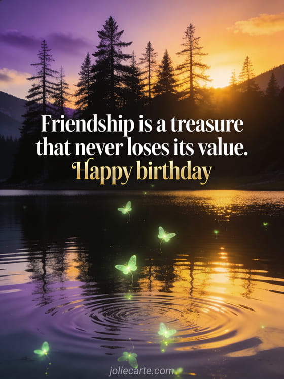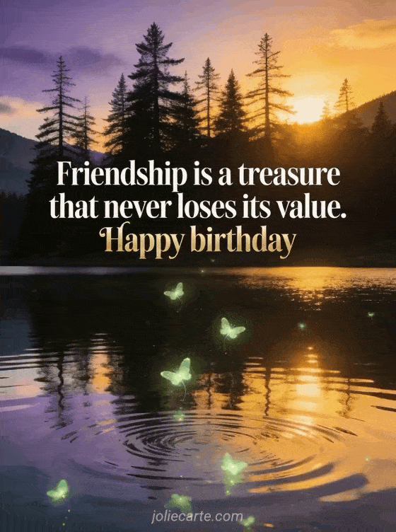 Friendship is a treasure that never loses its value. Celebrate your friend's birthday with this free card. Discover also a happy birthday friend image, a birthday wish for a friend or a happy birthday card my girlfriend.