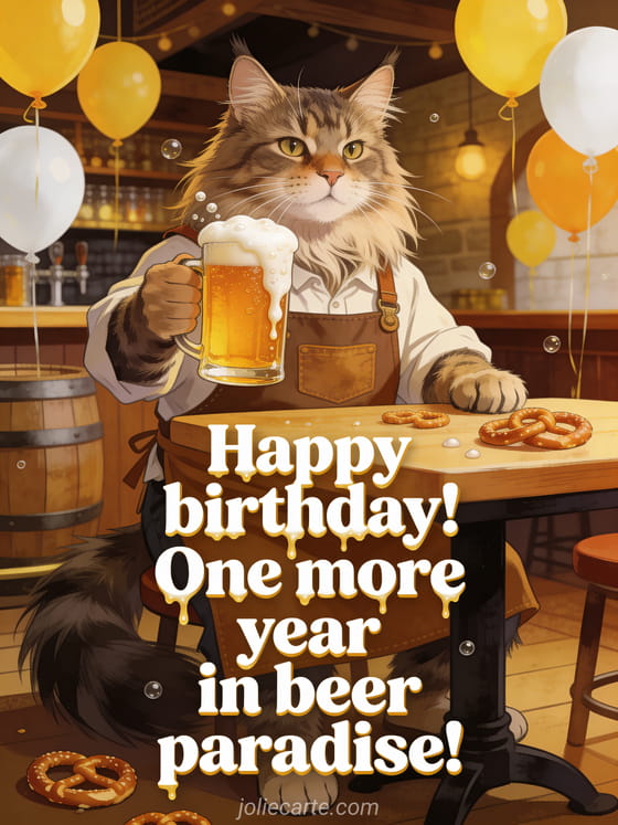 Raise a glass with this funny birthday card for the beer lover in your life. Discover also an animated birthday card for men or a happy birthday gif for him.