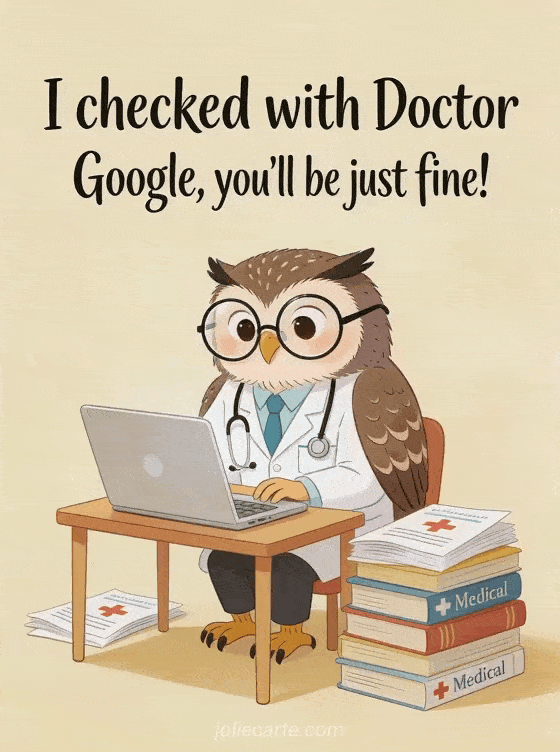 I checked with Doctor Google, you'll be just fine! a funny get well message to brighten someone's day