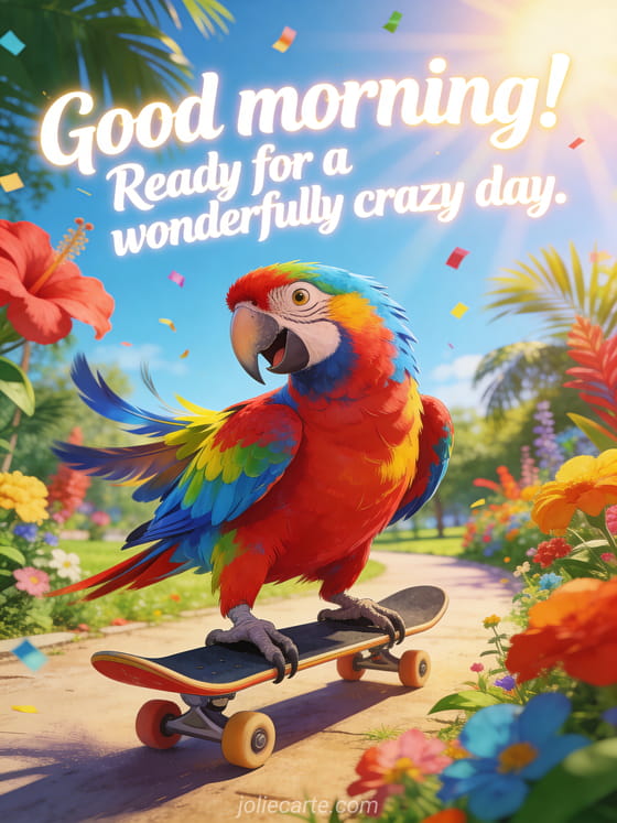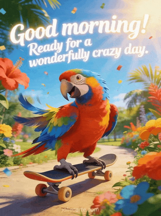 Start the day on a high note with this funny good morning image featuring a macaw parrot on a skateboard. Also check out funny good morning gif free or a funny good morning gif.