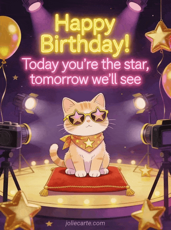 Happy Birthday! Today you're the star, tomorrow we'll see a glamorous and funny birthday greeting