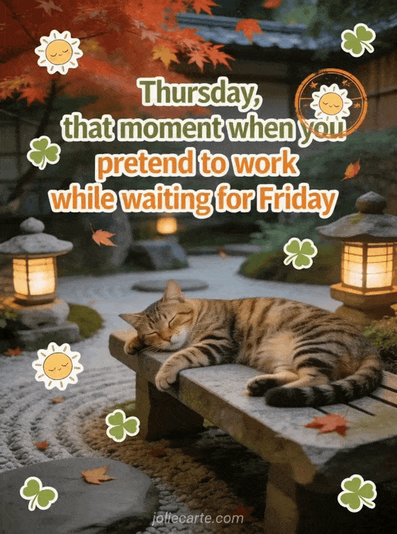 thursday, that moment when you pretend to work while waiting for friday a funny thursday message with lazy zen energy