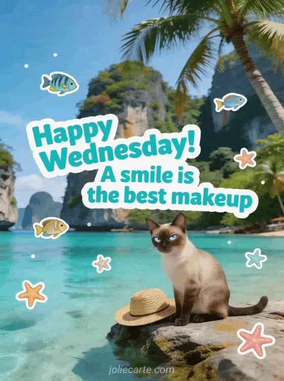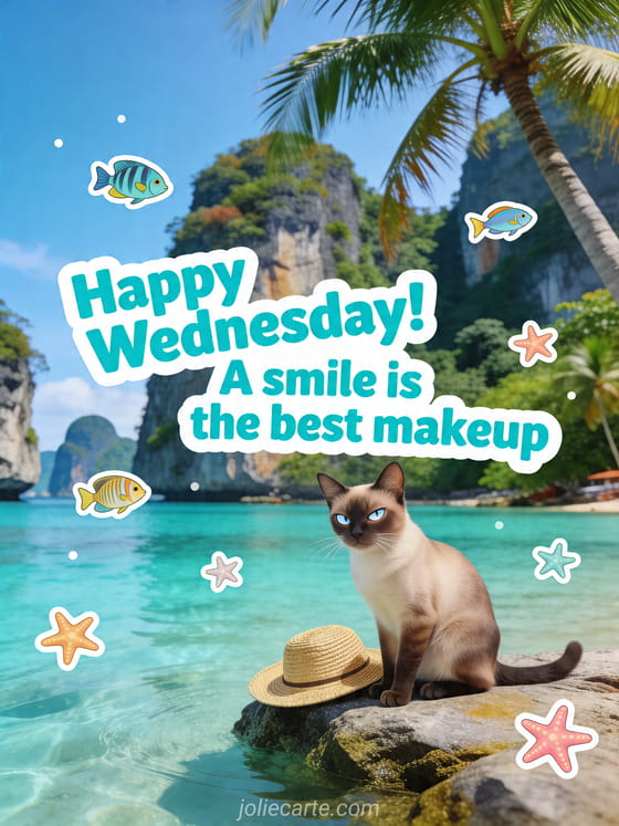 happy wednesday! a smile is the best makeup a funny wednesday greeting with sunshine, sea, and a playful smile