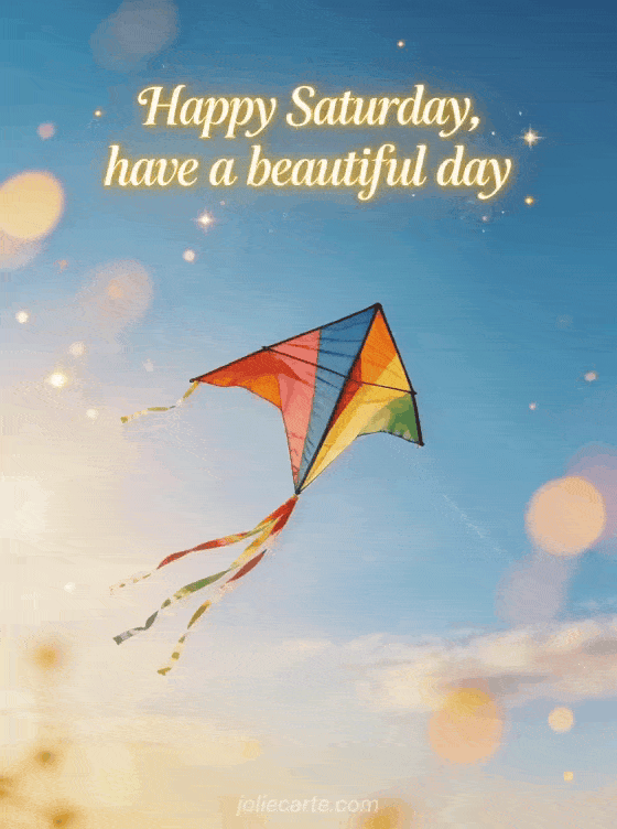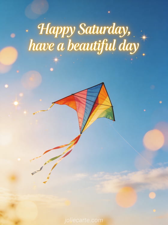 Happy Saturday, have a beautiful day a warm Saturday greeting with a colorful kite