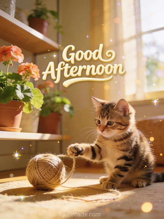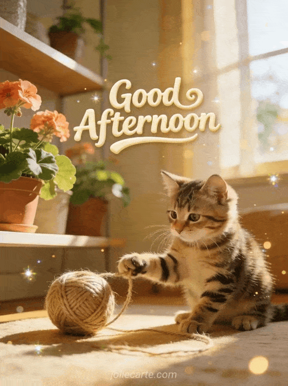 Good afternoon a cheerful good afternoon greeting with an adorable kitten