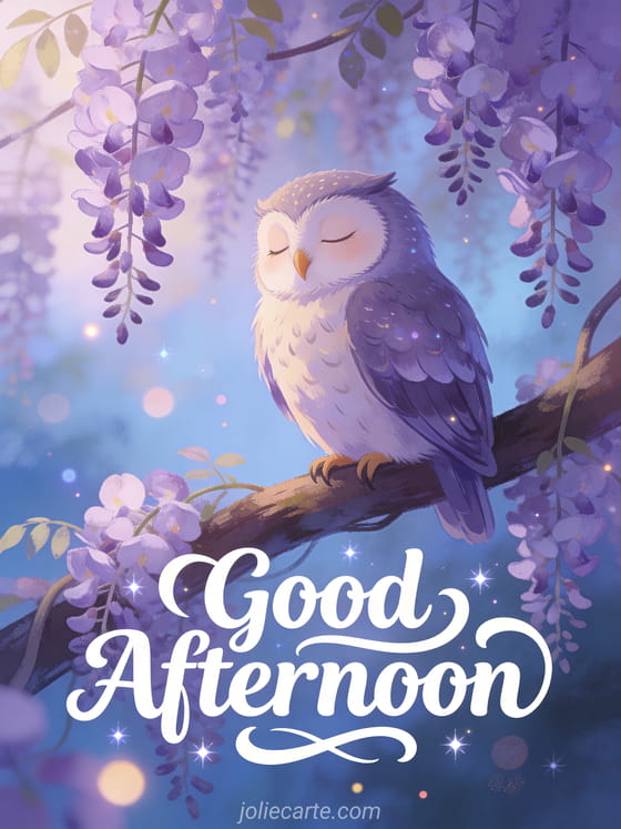 Share a good afternoon image with this whimsical owl and wisteria card. Discover also a good afternoon my love image or a good afternoon big kisses image.