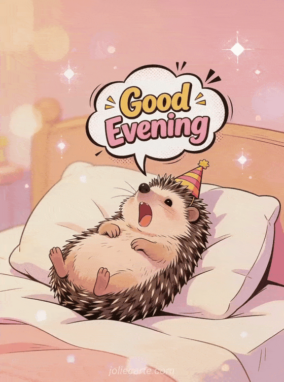 Share a warm and cozy good evening greeting with this adorable ecard, perfect for winding down the day with a smile. A delightful way to let someone know you are thinking of them as the evening settles in.
