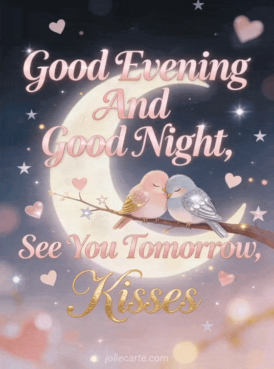 Good evening and good night, see you tomorrow, kisses a romantic and loving good evening good night see you tomorrow