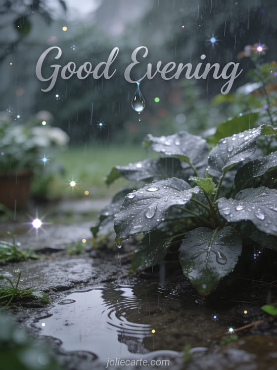 Send a cozy good evening card for a rainy night with this free greeting card. Discover also a good evening romantic night or a good evening kisses butterfly card.