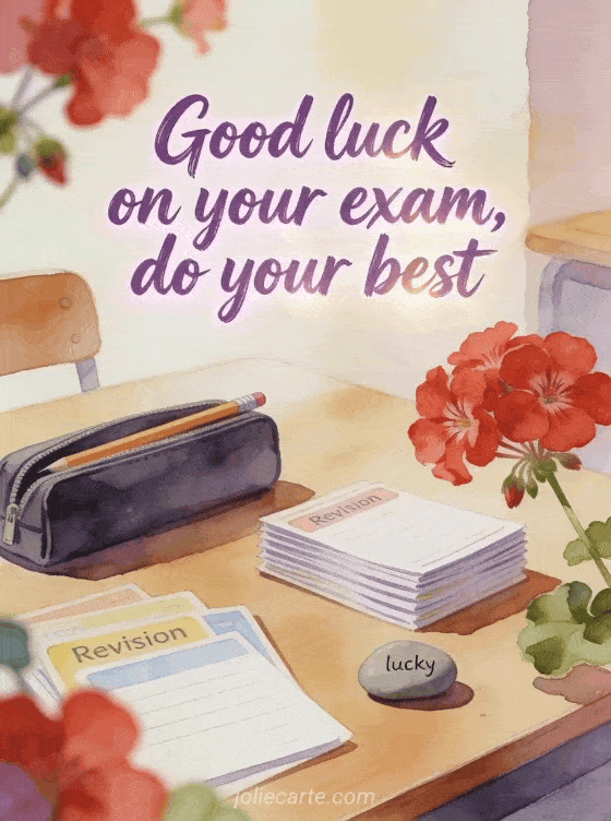 Good luck on your exam, do your best an encouraging exam wish