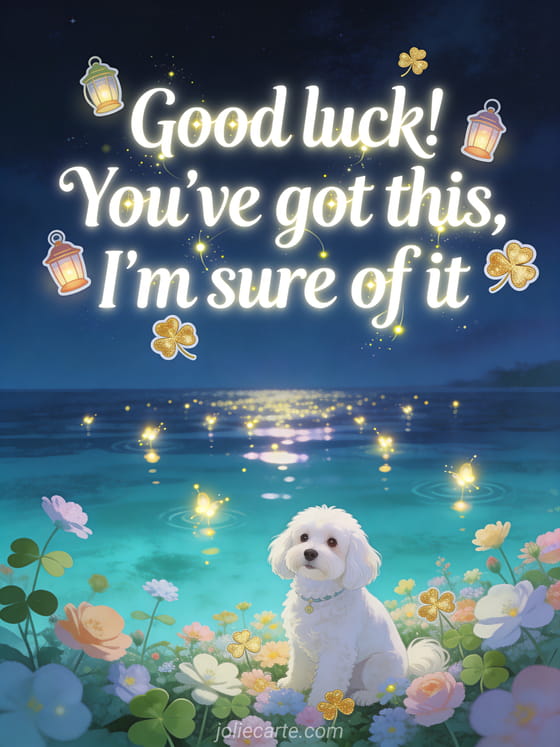 Share this magical night card to encourage a colleague and show you believe in them. Discover also a good luck message for job interview or a good luck meme card.