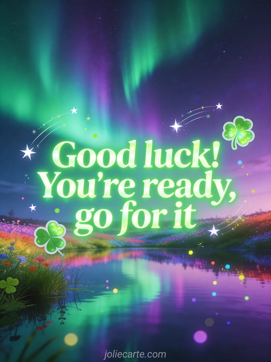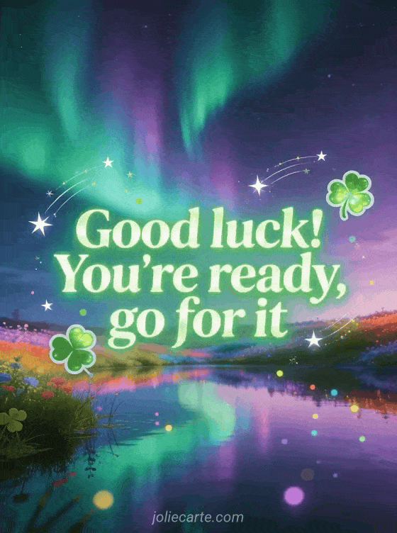 Share this magical aurora borealis card to encourage someone before their job interview. Discover also a animated good luck card or a good luck message competition card.