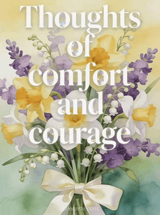 Send warm thoughts of comfort and courage to someone facing a difficult time or upcoming surgery. This beautiful watercolor card with daffodils, violets and lily of the valley conveys your heartfelt support.