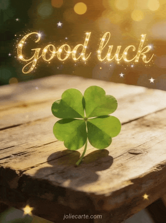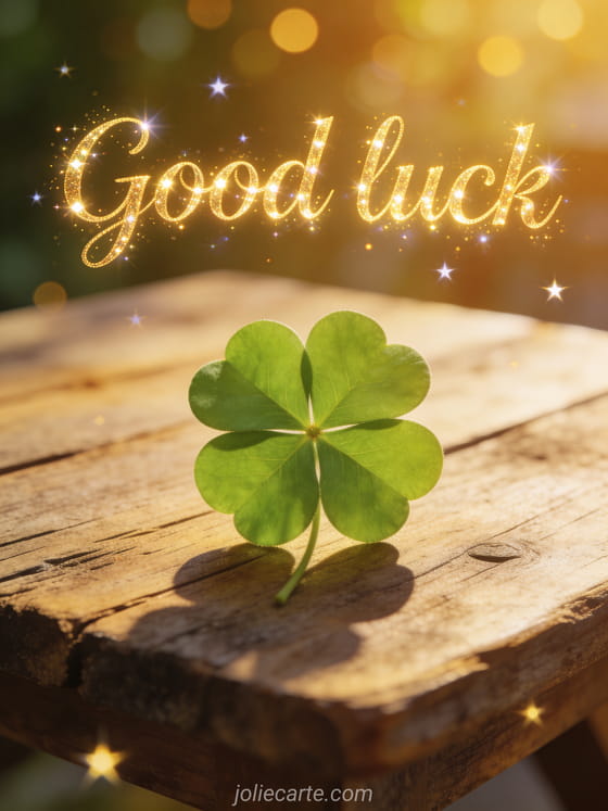 Send this beautiful good luck card with a shining four-leaf clover and wish someone the best. Discover also a good luck card template or a good luck for the future card.
