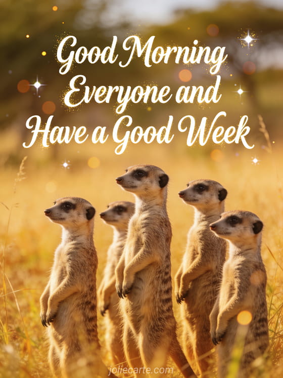 Send this joyful good morning everyone and good week card to share a wonderful start. Discover also good morning good week photo or good night and good week.