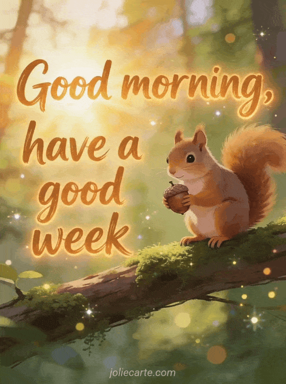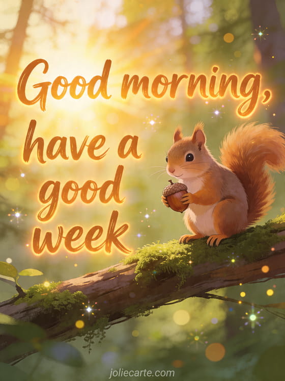 Good morning, have a good week a fresh weekly wish with a cute squirrel in the forest