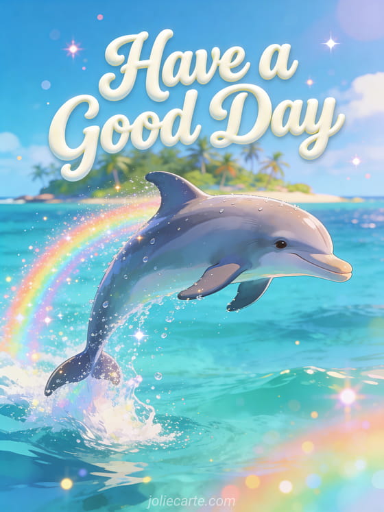 Share joy with this have a good day card featuring a playful dolphin jumping out of sparkling turquoise ocean water. Discover also a a little thought for you have a nice day or a have a nice day photos card.