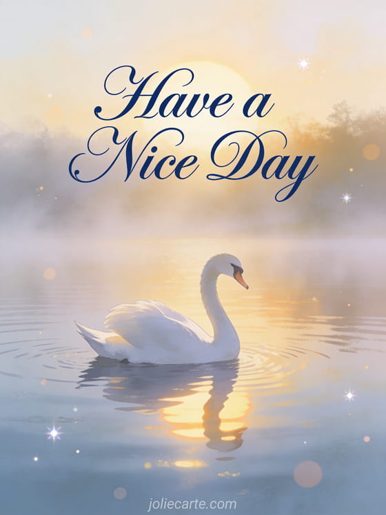 Share an elegant morning wish with this serene white swan have a nice day card. Discover also a good morning have a nice day card or a a sunny day card.