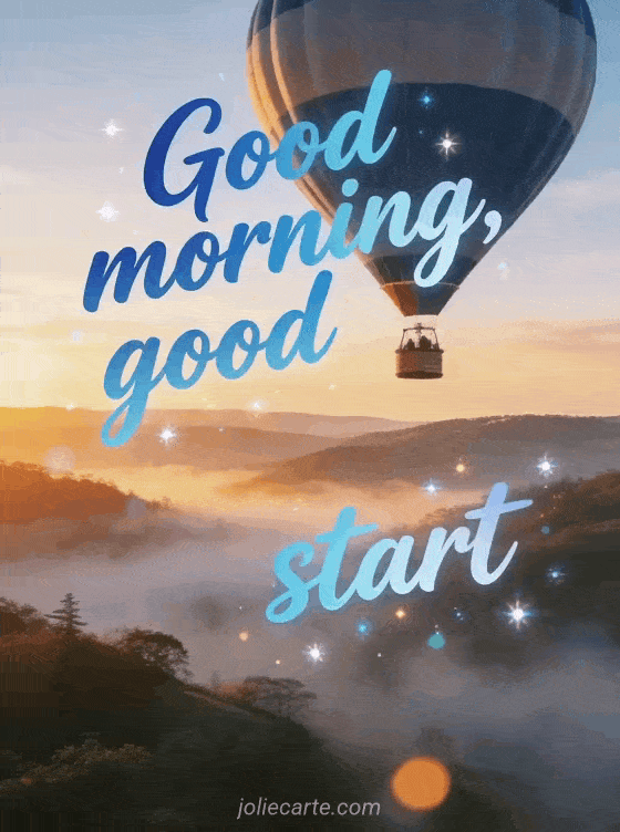 Send a Good morning card with a hot air balloon rising over a misty valley for an inspiring start to the week. Discover also funny happy monday, happy monday morning and happy monday good week coffee.