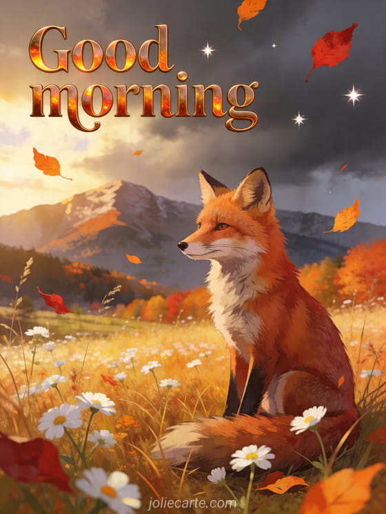 Share a beautiful good morning greeting with a fox in golden grass, alpine flowers and the warm colors of autumn. Discover also touching good morning poem, friendship good morning morning message and emilia-romagna card.