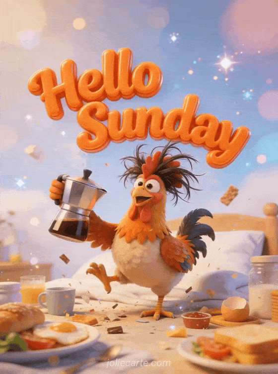 Hello Sunday a funny Sunday morning greeting with a rooster