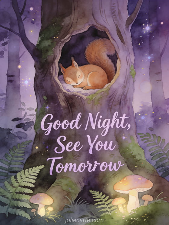 Good night, see you tomorrow image a magical good night wish in a peaceful woodland scene