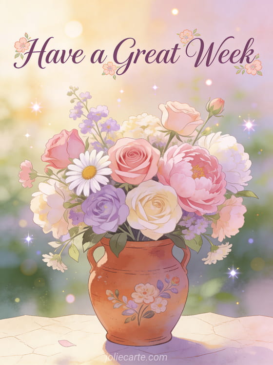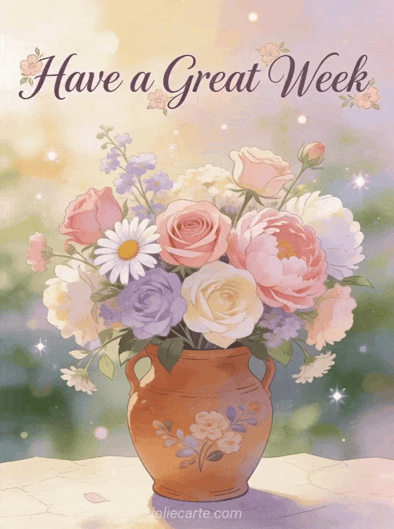 Share a beautiful good week flowers greeting to wish someone a fresh and vibrant week ahead. Discover also have a great week motivation or have a great week image card.