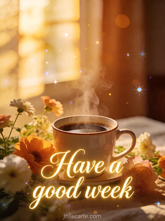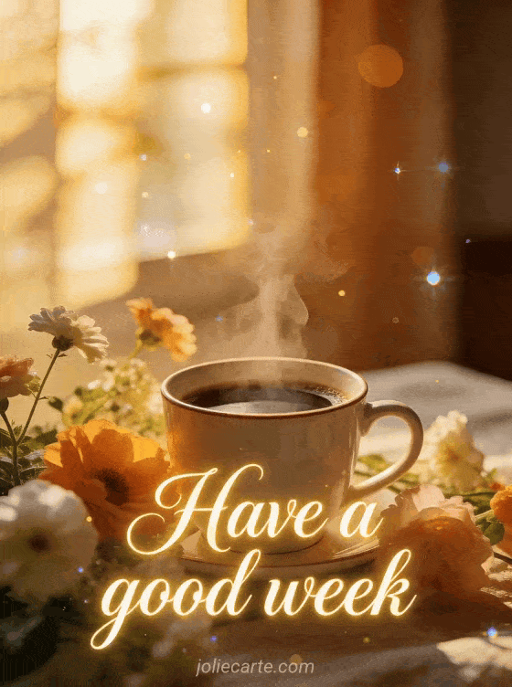 Share a warm Have a good week greeting with this free card and start the week with coffee, flowers and positive energy. You can also explore have a nice week photo, good week gifs or animated good week gif gif.