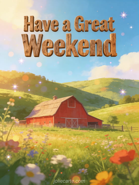 Share a beautiful good weekend image to wish someone a wonderful time in the countryside spirit. Discover also good weekend kisses or good weekend relax card.