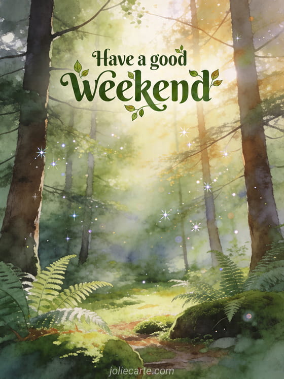 Share a refreshing Have a good weekend greeting with this free card and invite someone into a calm green forest mood. You can also explore have a nice weekend kisses, have a nice weekend image or quote good weekend funny.