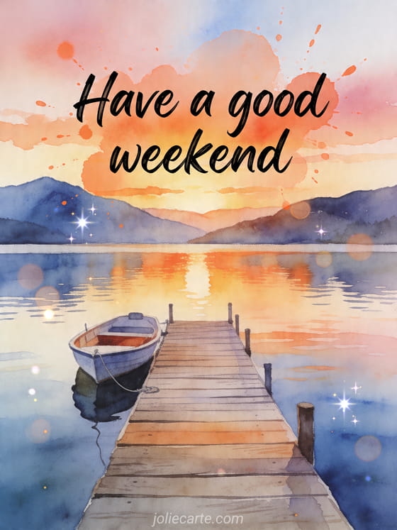 Have a good weekend a peaceful weekend wish with lake and sunset serenity