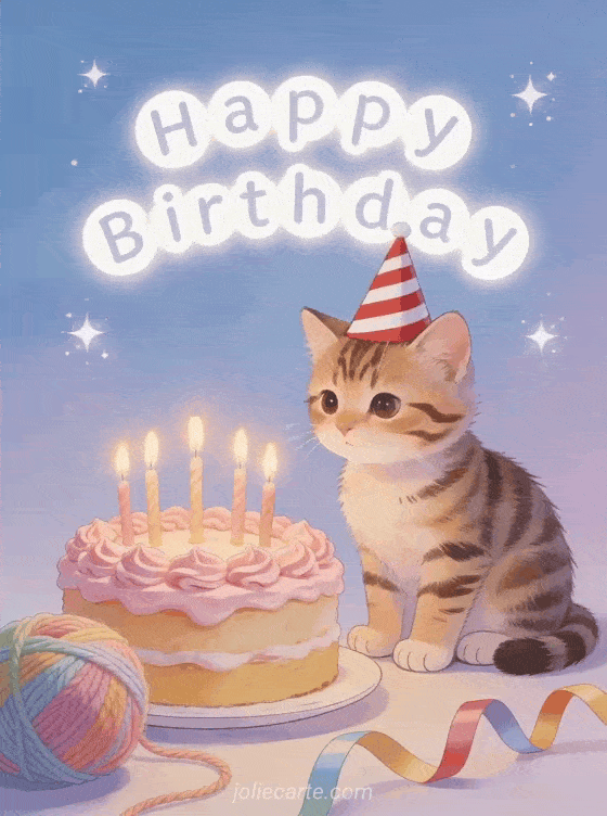 Celebrate a child's birthday with this sweet card featuring an adorable tabby kitten. Discover also a unicorn birthday card or a cute baby birthday card.