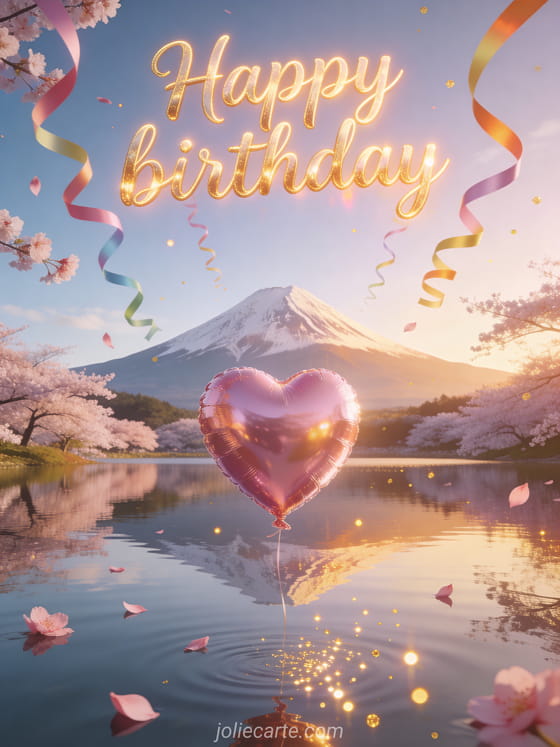 Share an elegant birthday wish with this festive panoramic card of lake reflections and cherry blossoms. You can also discover birthday card woman beach, birthday cards woman, or happy birthday woman free images.