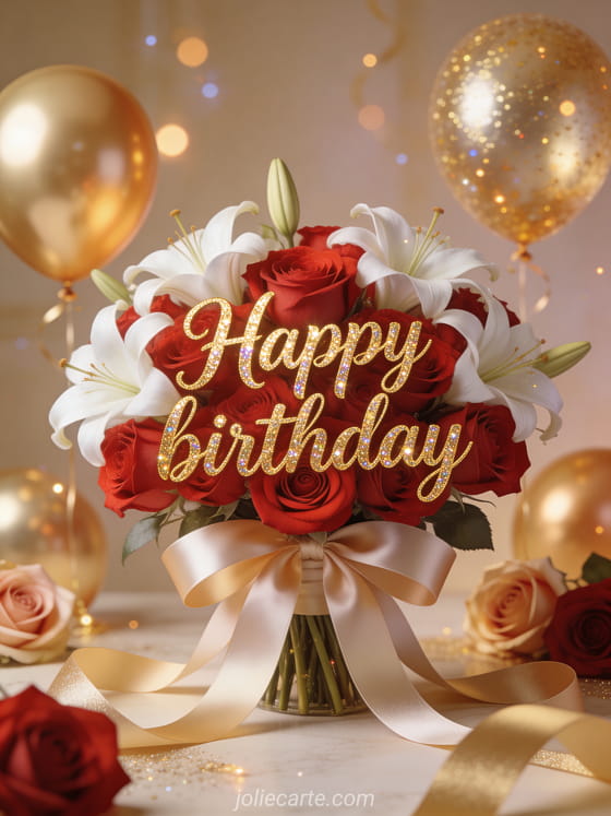 Offer mom a glamorous birthday greeting with golden glittering calligraphy, red roses, white lilies, satin ribbons, and warm festive light. You can also choose a happy birthday mom heart card, a birthday card for one's mom card, or a happy birthday mom I love you card.