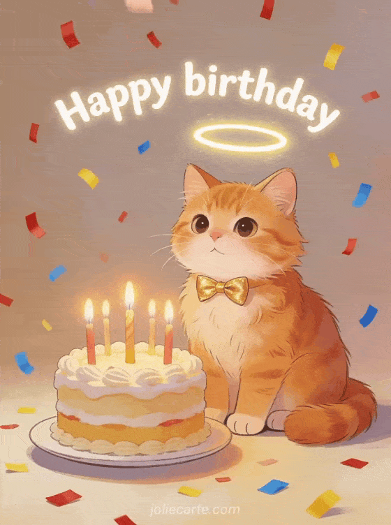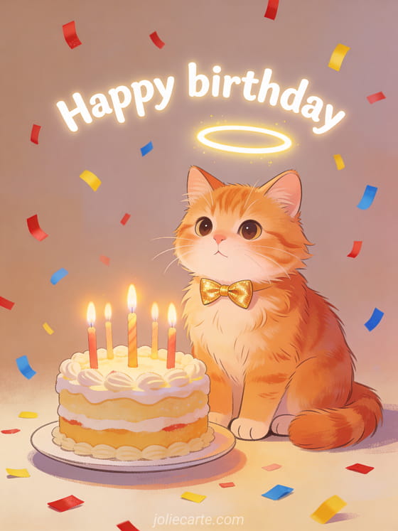 Share a cozy birthday smile with this warm illustration of a ginger cat, birthday cake with candles, and colorful confetti. You can also discover happy birthday my beautiful image, happy birthday on the water, and happy birthday with ginger cat.