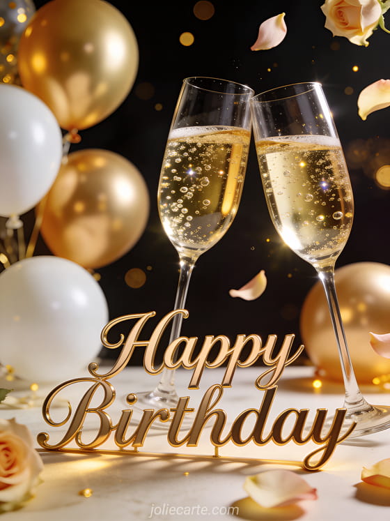 Toast to her birthday with this elegant champagne card for the special woman in your life. Discover also a happy birthday image woman or a happy birthday gif woman.