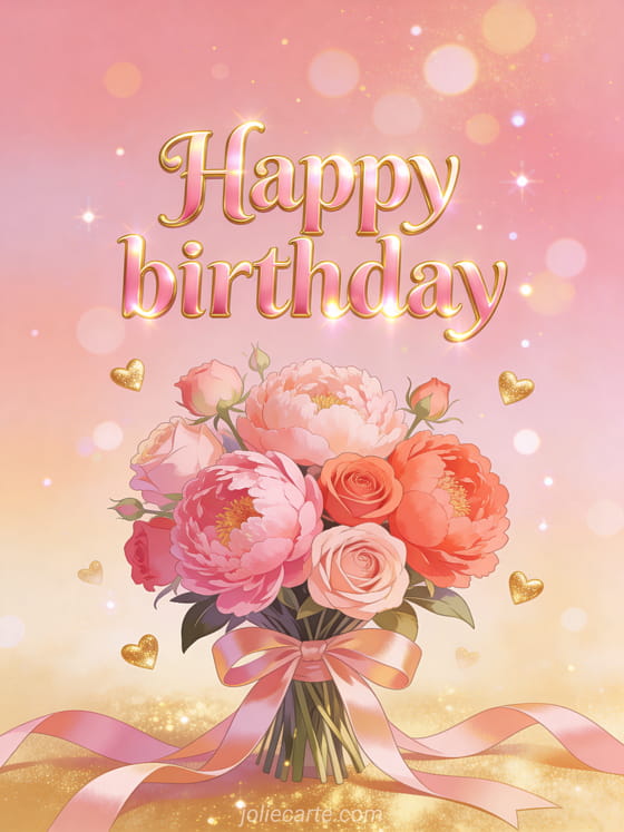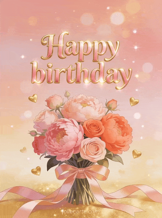 Send a tender happy birthday greeting with this beautiful pink peony card. Discover also a festive happy birthday celebration card, a happy birthday bird image or a happy birthday garden gif card.
