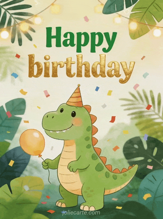 Make the party more playful with this joyful birthday card and its amusing dinosaur illustration. Discover also a happy birthday my friend, a free happy birthday gif or happy birthday rock n roll.