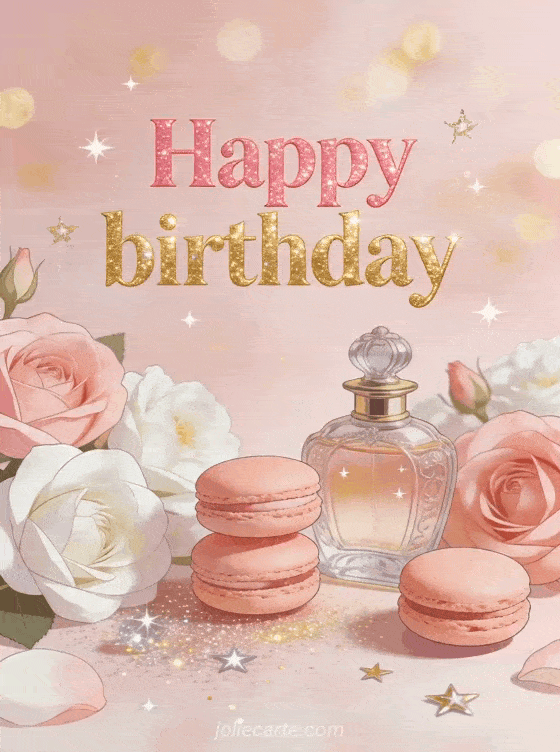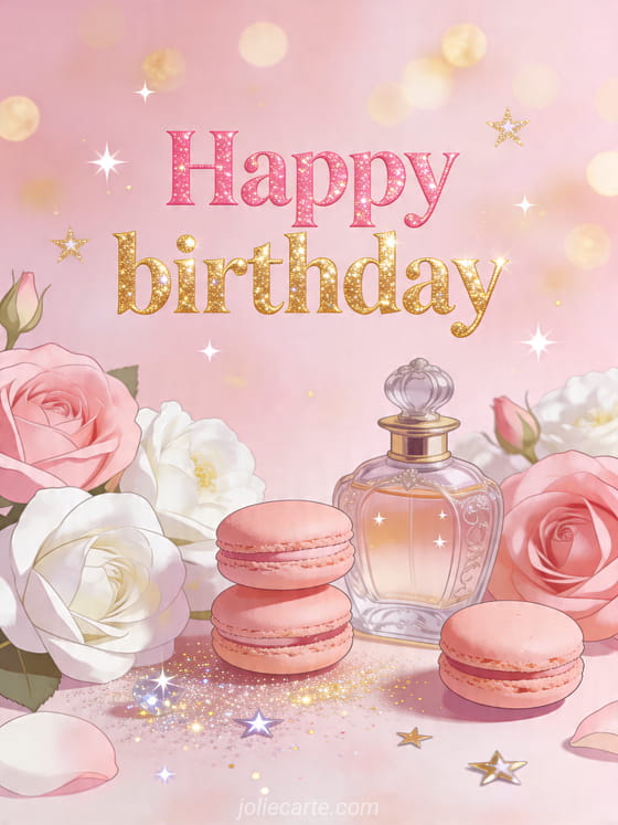 Bring glamour to the celebration with this chic birthday card featuring roses, macarons and a vintage perfume bottle. Discover also a musical happy birthday, a happy birthday dinosaur or happy birthday my friend.