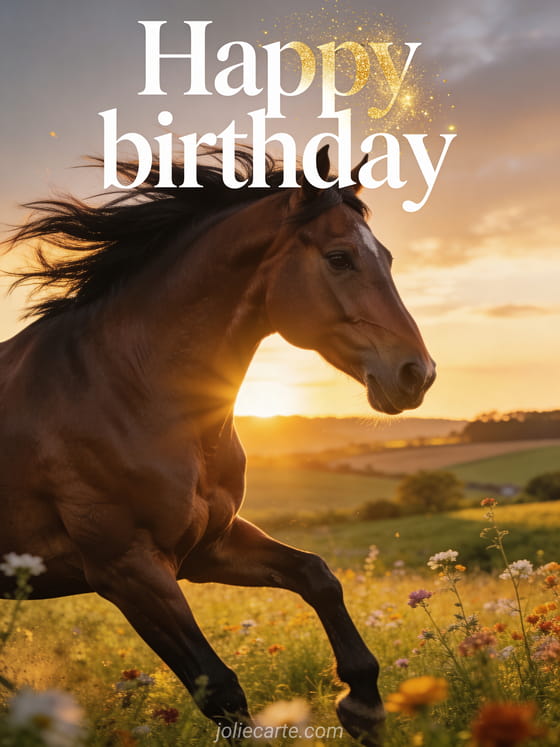 happy birthday horse a majestic birthday greeting with a galloping horse at sunset
