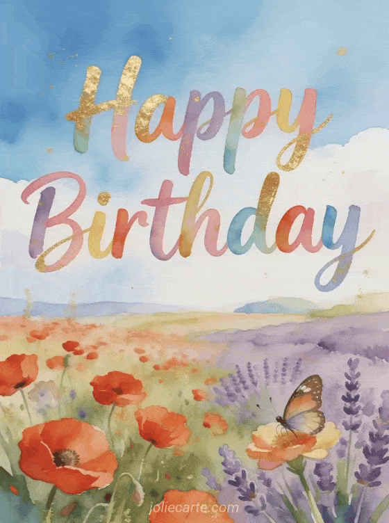 Send a joyful happy birthday greeting with a beautiful spring watercolor landscape. Discover also a happy birthday phrase card or a watercolor happy birthday card.