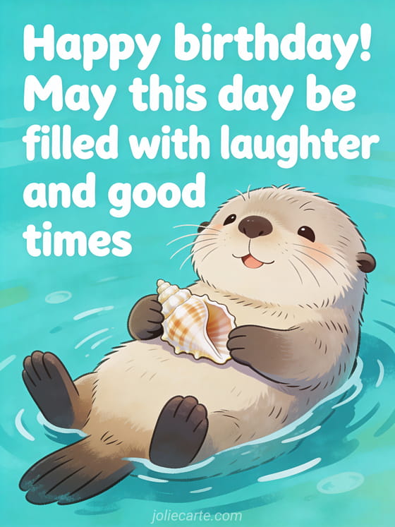 Share a fun marine birthday card with a peaceful sea otter floating on its back in turquoise water, holding a shell between its paws. Discover also a happy birthday happy birthday my son, an sms to wish happy birthday to my son, or a birthday card my son.