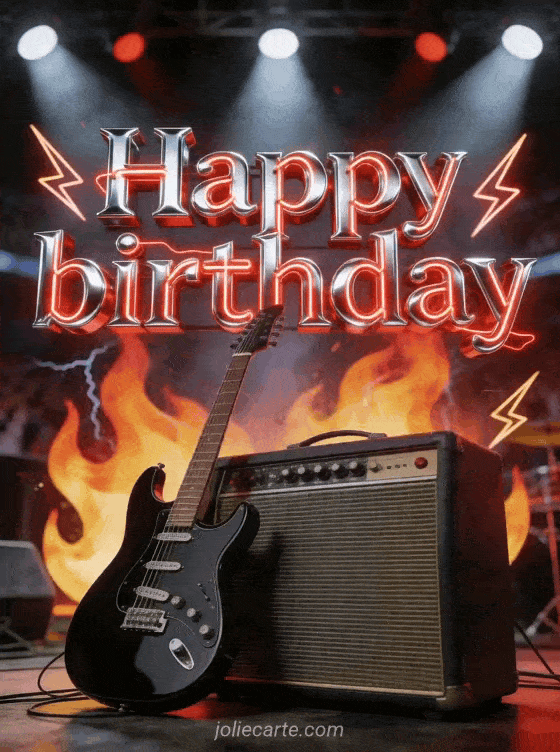 Share this beautiful happy birthday rock n roll card with energy and style. Discover also happy birthday mountain, happy birthday or happy birthday and happy birthday writing.