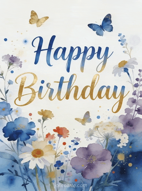 Send a beautiful happy birthday greeting with a delicate watercolor touch. Discover also a happy birthday gif card or a happy birthday photo card.