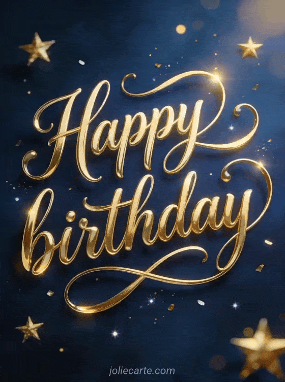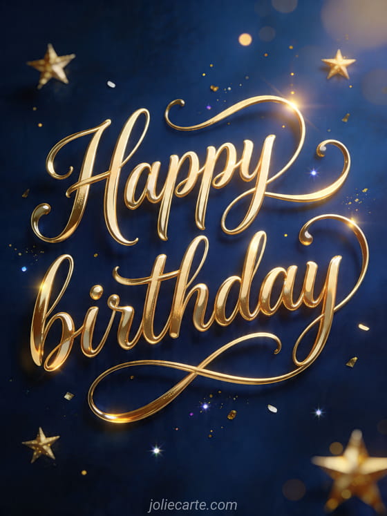 Send a refined birthday wish with this artistic calligraphy card on a starry blue background. Discover also a wish happy birthday, a happy birthday card or happy birthday photos.