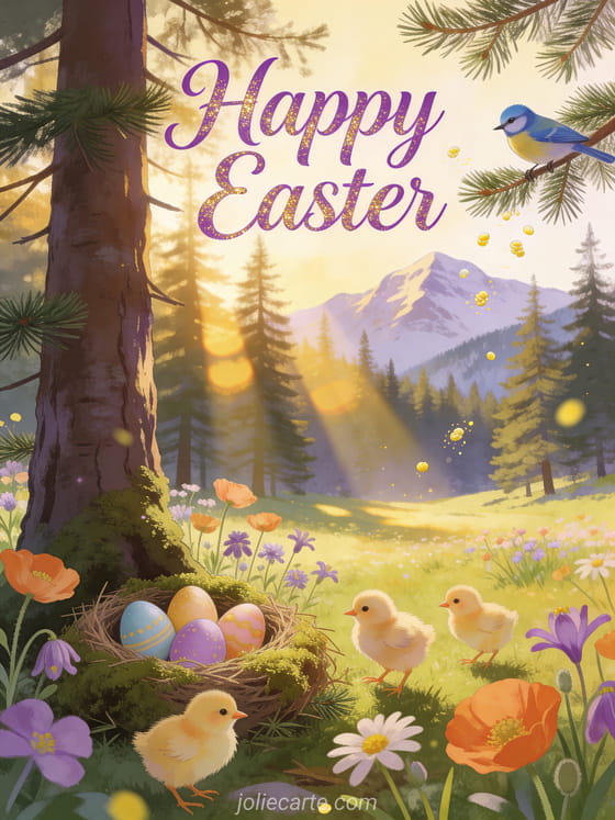 Free Happy Easter card with forest images