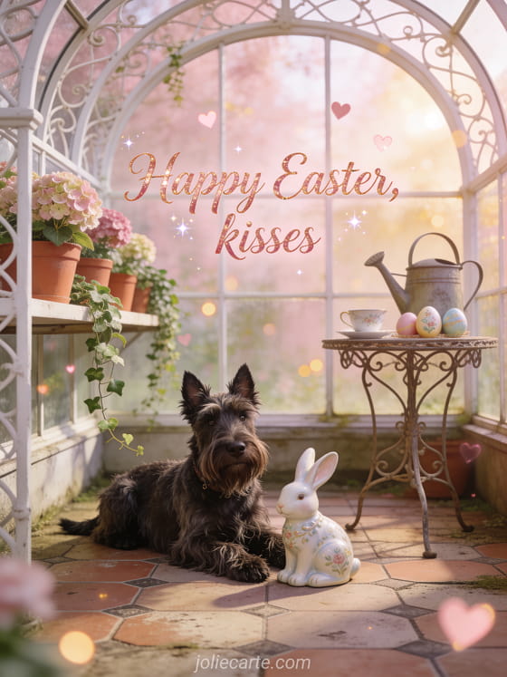Happy Easter kisses gif a tender Happy Easter kisses gif with a charming Victorian greenhouse scene