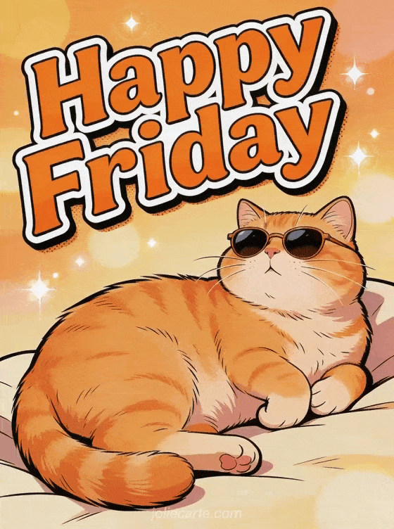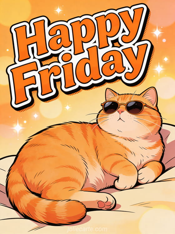 Share a hilarious happy Friday humor card with an adorable chubby cat wearing tiny sunglasses. The perfect way to celebrate the weekend arriving. Discover also a funny happy friday card or a friday have a great day card.
